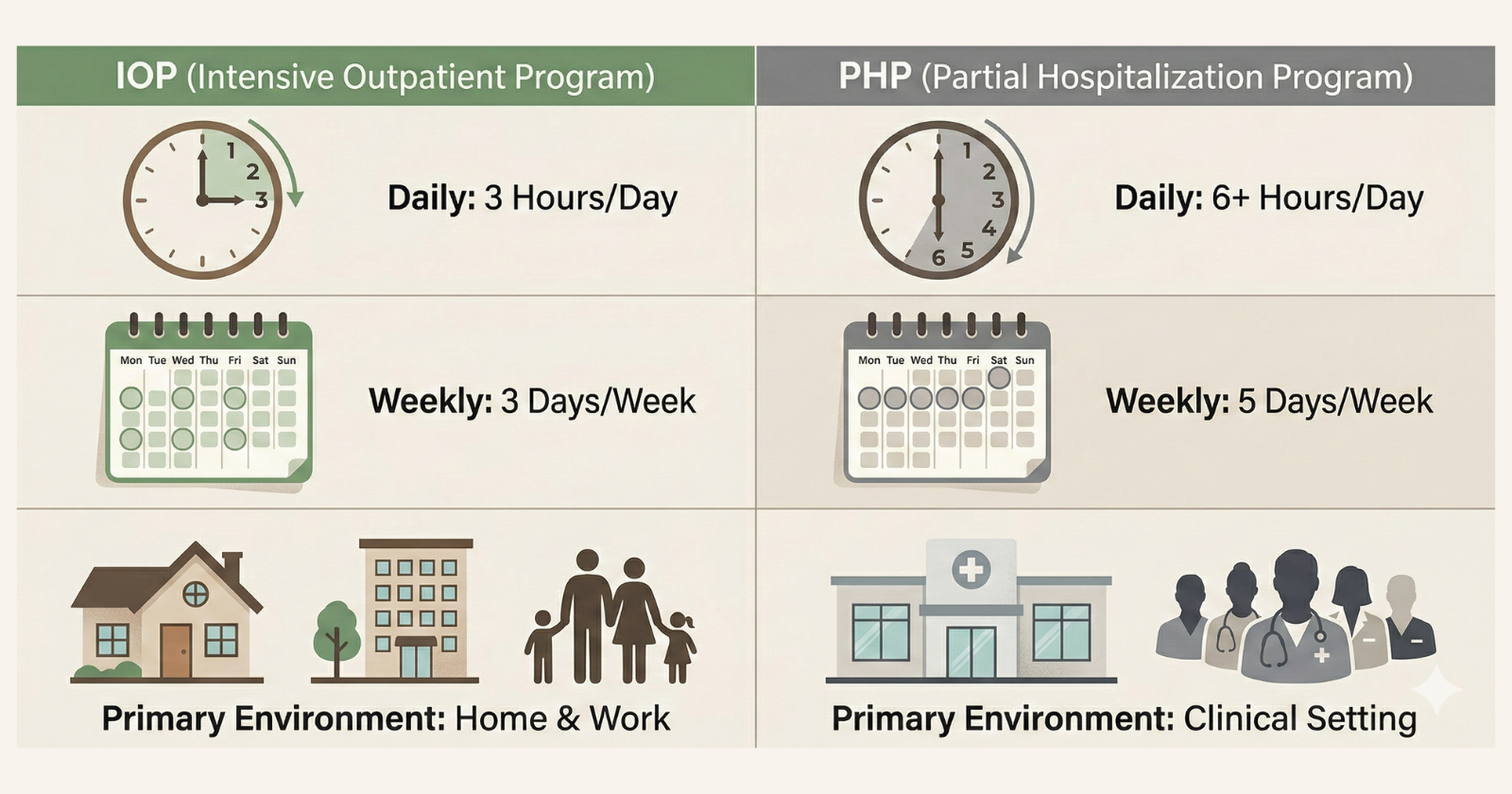 IOP vs PHP: Comparing Treatment Intensity, Structure, and Clinical Support